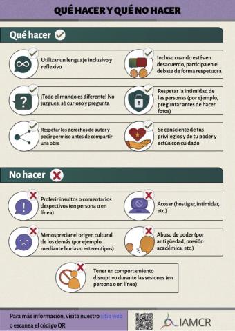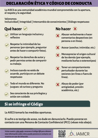 Este resumen de una sola página ofrece una visión general del Código de Conducta y una lista de lo que se debe y no se debe hacer que puede descargarse y utilizarse durante eventos o presentaciones de la AIECS.