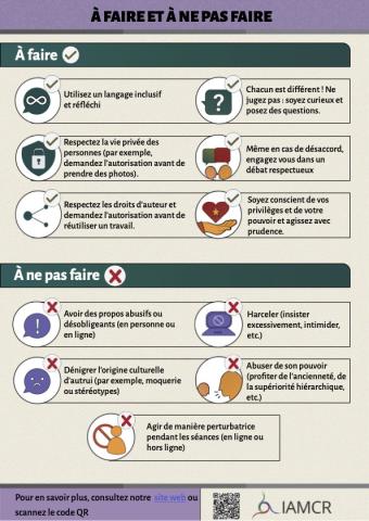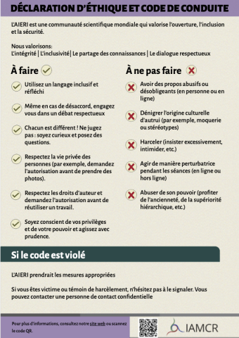 Ce résumé d'une page donne une vue d'ensemble du Code de conduite et une liste de choses à faire et à ne pas faire qui peut être téléchargée et utilisée lors d'événements ou de présentations de l'AIERI.